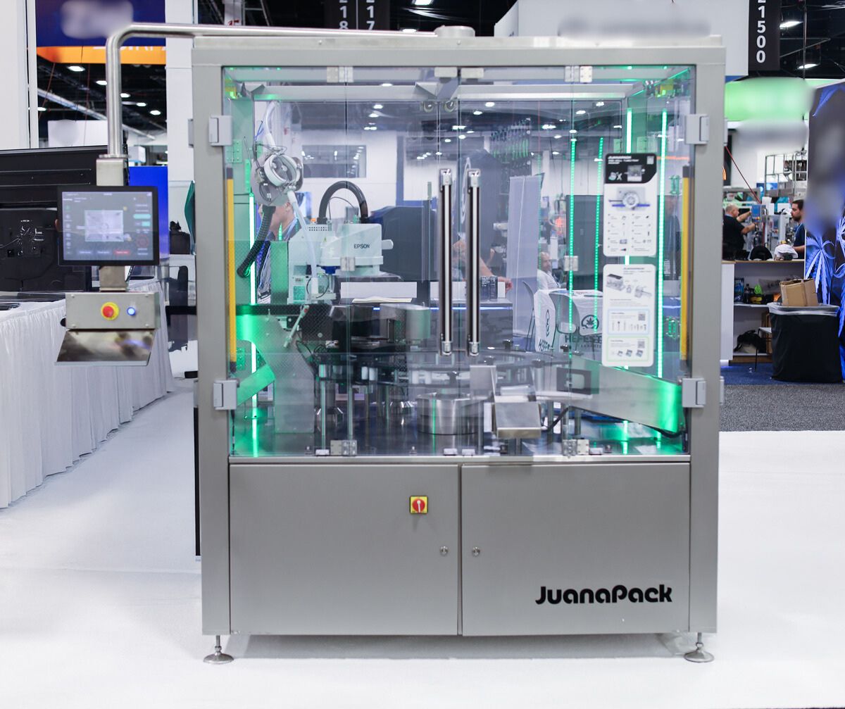 The JuanaPack is an automatic rotary filling and packaging system engineered for loading and orienting pre-rolls into rigid packages. The machine automatically indexes tubes and / or trays, orients the pre-roll, fills and indexes, ensuring a smooth and efficient operation. Labeling, robotics, capping, multi-fill are just some of the configurable options available.